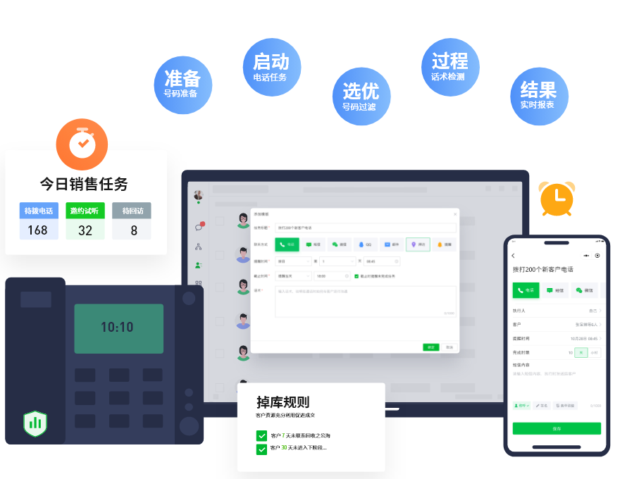 对于制造业而言,无论是新客户拓展还是老客户跟进,电话仍然是很重要的方式,尤其是补充了新的拓客路径后,下一步的重点自然是需要通过电话来与客户进行沟通,了解其进一步的需求情况。通过EC商务通,申世电气解决了电话线路不稳定以及高频拨打,导致大量电话无法正常呼出的难题,并且通过AI质检及风险识别,对于拨打的号码质量进行实现检测,既避免了打扰客户,也提升筛客效率,销售团队的跟进热情和积极性也更高,客户开发数量得到数倍增长。并且在EC CRM内也会自动完成分层分类客户,并提供丰富的跟进模板、联络工具帮助销售建立适合的跟进计划,跟进过程中的电话、短信、微信等沟通记录都能够完整留档记录,管理层可以同步看到真实的客户跟进情况,掌握进度。